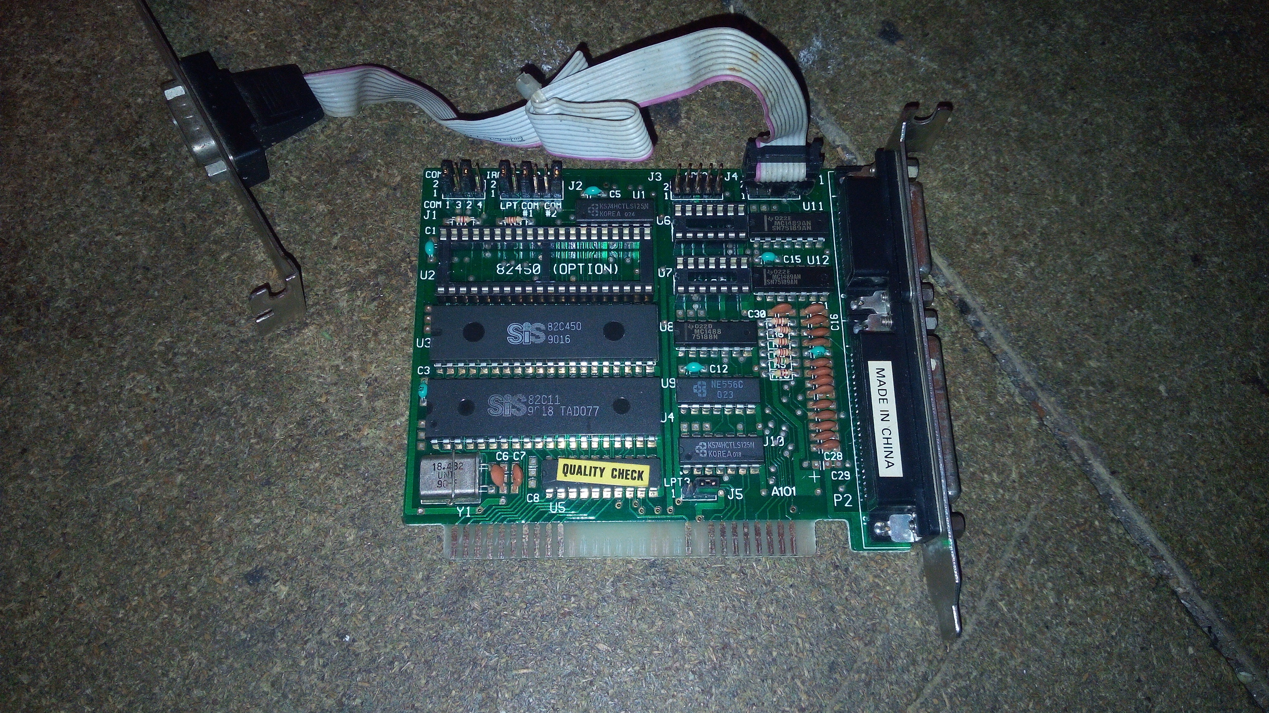 Serial, Parallel and a Game Port are provided by this I/O card, with options to add a second Serial port later. This card adheres to the old LPT numbering standard where 'LPT3' would be 378h. The assumption is that LPT1 is on the video card at 3BCh - watch out for this in old machines and software. |
