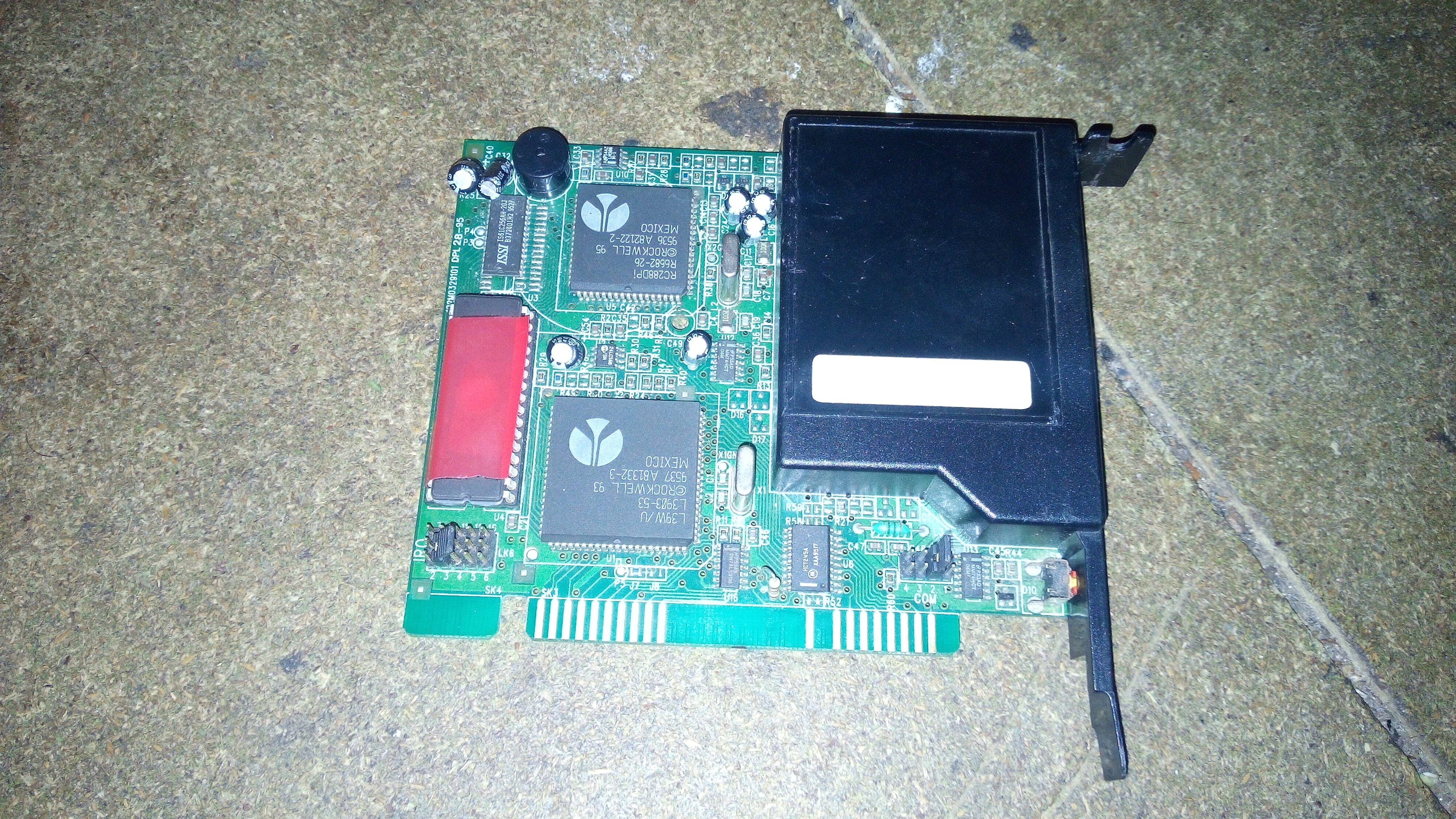 A 1990s modem with an unusual plastic slot cover. It is designed such that once your RJ-11 cable is inserted, it vanishes so far down the hole that you need tools to get it back. It also has a reset button on it (a sign of reliability, surely) and can achieve 28.8K maximum speeds. Still, it has dialled a fellow enthusiast in Canada. |